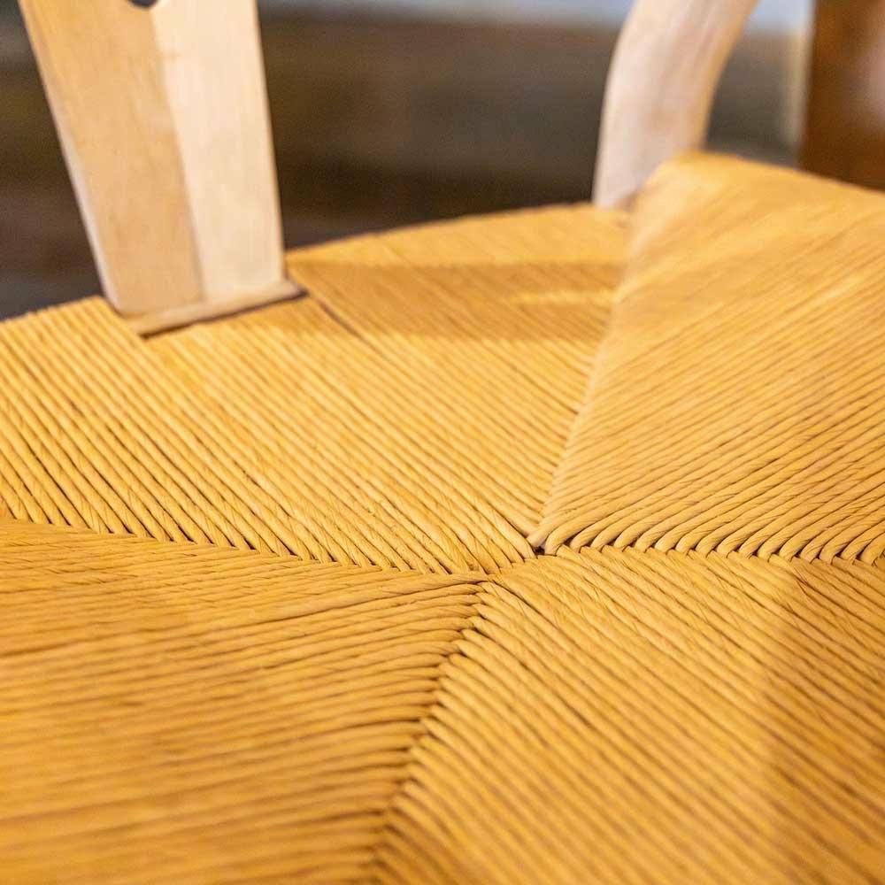 Made of reclaimed oak and rope, this open-back chair is simple yet most attractive. Suitable for use around a dining table or as a pretty 'extra' chair that can sit on your landing or in a bedroom until it's needed for extra guests. The rope seat has been skillfully woven into triangle shapes to a center point and the oak has been tastefully whitewashed to give it a soften colour and more rustic feel.