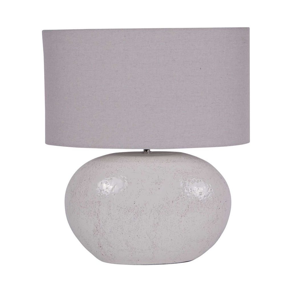 With its versatile neutral tone, the Oviedo Table Lamp effortlessly complements any decor scheme. Its subtle yet distinctive design adds a touch of unique charm to any space, perfect for those who value both style and substance. Sold with Shade. Base dimensions: W41 x D14 x H32cm. Cable length: 130cm. Switch type: Standard Toggle Switch.