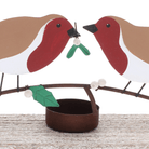 This pair of robins are perched on the mistletoe and are clearly happy together.