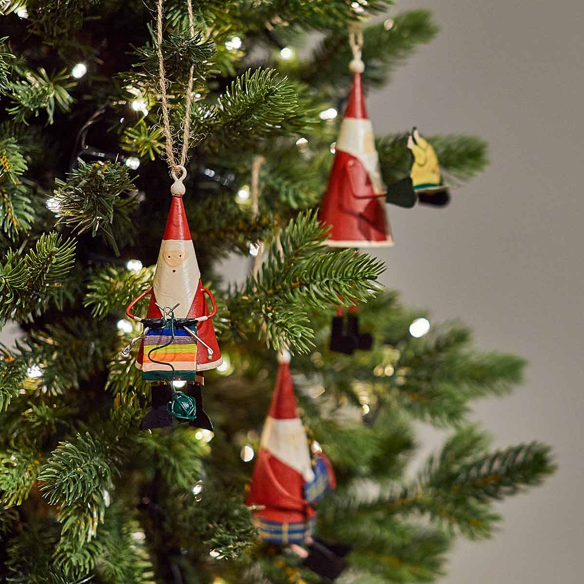 Santa is carefully knitting rainbows to spread cheer and joy for everyone!
