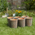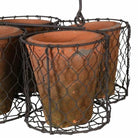 A set of six terracotta pots held within a wire basket with a handle that makes a most attractive display. We love these pots planted with herbs and displayed together. Perfect for a back step or small garden.