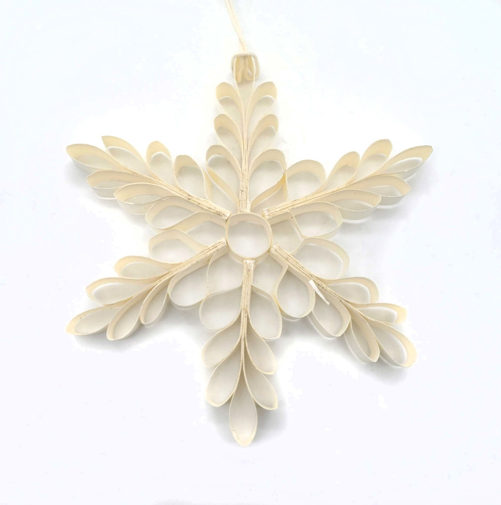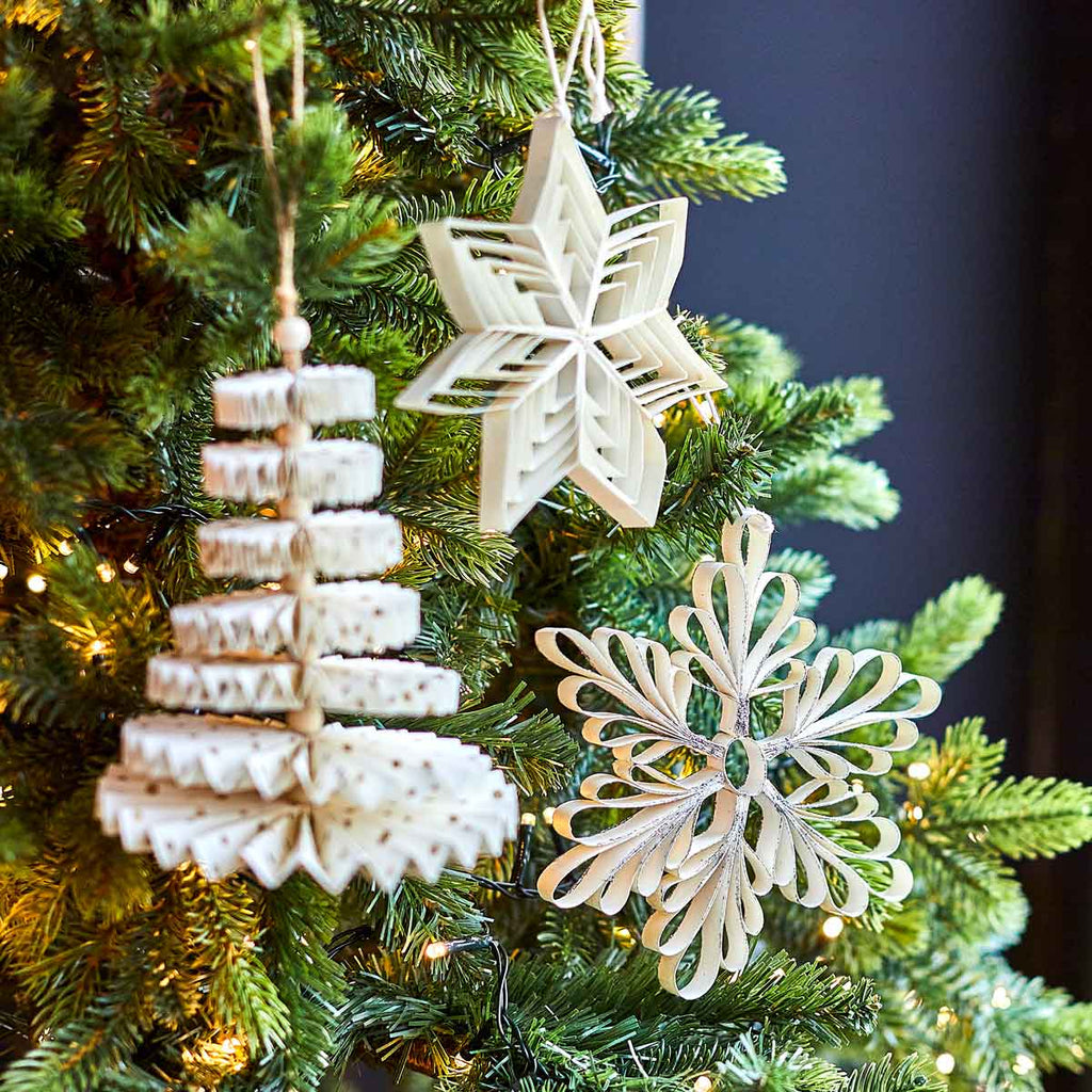 This Glitter paper snowflake decoration is inspired by vintage paper decorations. In a soft white paper with glitter edges, this paper snowflake is a soft, natural addition to your tree this Christmas.