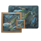 These placemats add an element of serenity to your table just by the artist's skill in capturing the motion of these majestic whales. Ideal to protect your surfaces from heat and spillages. Also in this design are coasters and large table mats.