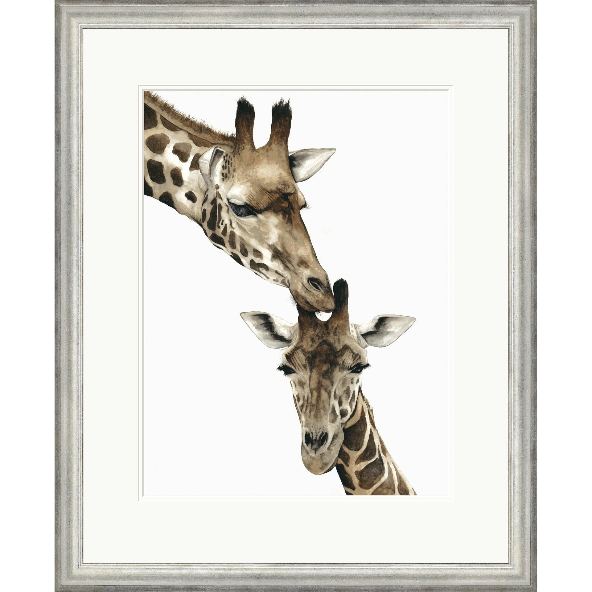 What an image! What a show stopper on any wall in your home. This image can't fail but to move the viewer, it stirs a feeling so wondrous, that of a parent caring for her young. Framed and ready to hang, this print of giraffes is breathtaking and from the world-renowned artist Dominique Salm.
