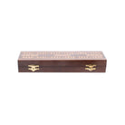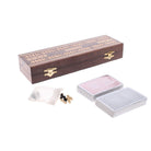 This wooden cribbage set with playing cards is made of quality wood by skilled hands. This set has a double track, two sets of cards, and 6 playing pieces which are stored in the built-in compartments.